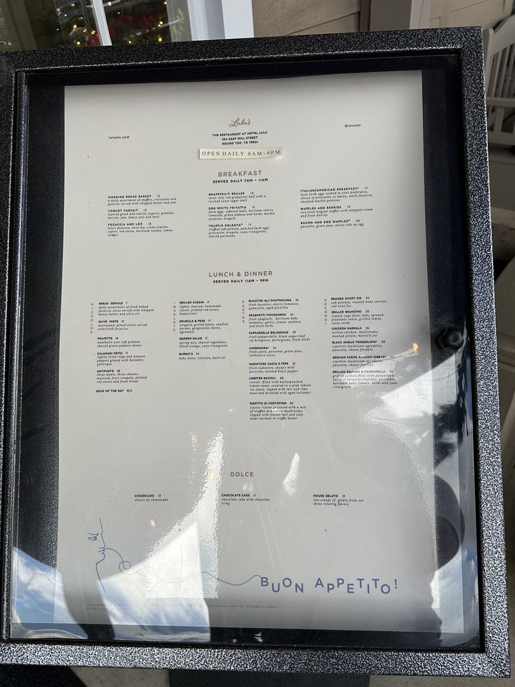 Nestled in Round Top, Texas, Lulu's offers a charming Italian dining experience. With a classy atmosphere and exceptional service, this women-owned establishment is perfect for a special date night or celebration. The menu boasts traditional Italian dishes with a twist, such as the Radiatore Cacio e Pepe and flavorful short ribs. The Lady Cello drink is a must-try, and the tiramisu is a sweet ending to any meal. While the brunch menu may lack variety, the arugula salad and pappardelle bolognese are solid choices. Outdoor seating and a spacious cellar make it ideal for large parties. Despite a few minor hiccups like dry tiramisu and sugar ants, Lulu's stands as a hidden gem in Round Top, offering a taste of old Italy with a touch of Texas charm.